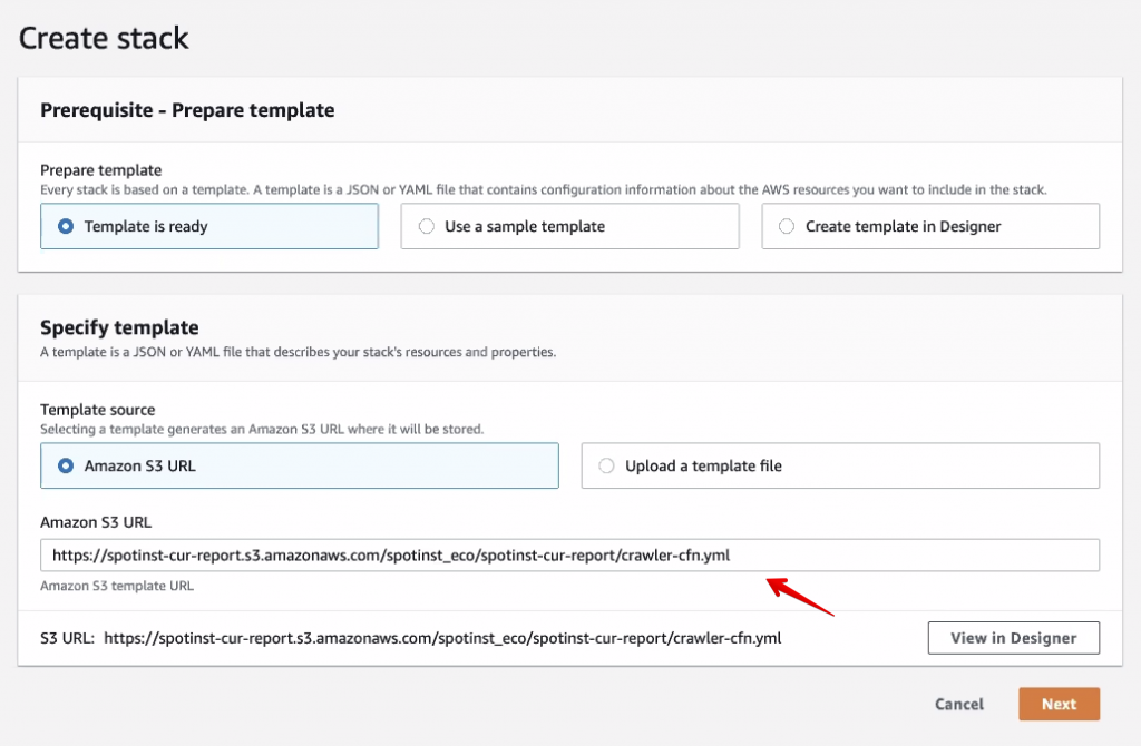 spotinst-cur-report. This name must be the same as the report name that you entered previously. - Only change the bucket's region if necessary.