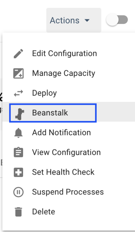2. In the Elastigroup Management View, under Actions select Beanstalk.