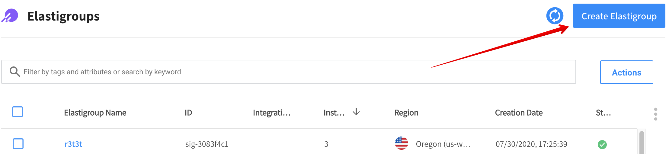 1. In the left menu of the Spot console, click Elastigroup/Groups, and click Create Elastigroup.