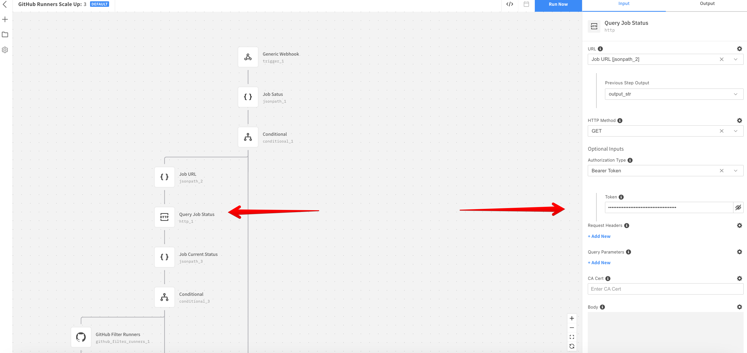 Add the GitHub Token in Query Job Status resource. You can: